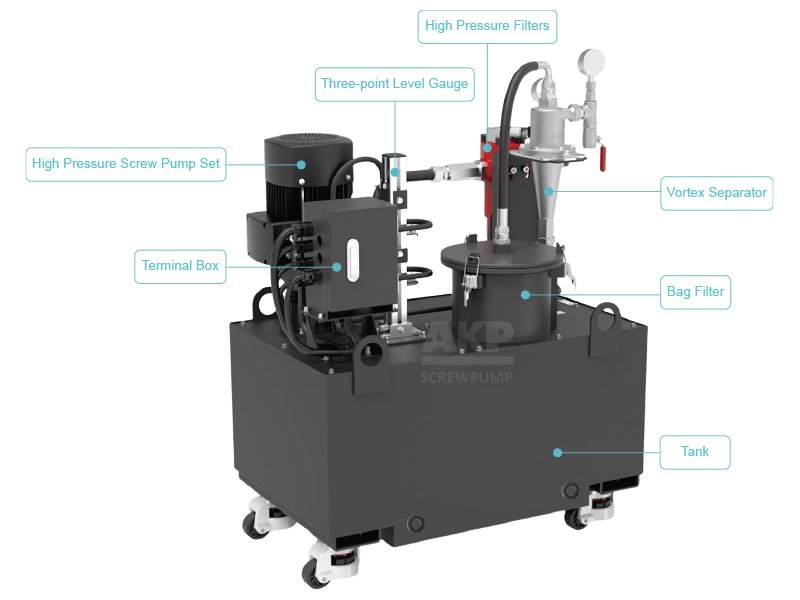 Designed for rough working conditions of metal processing, suitable for carbon steel, stainless steel, aluminum and other materials efficient filtration needs, with small flow high pressure pump to achieve strong power output.