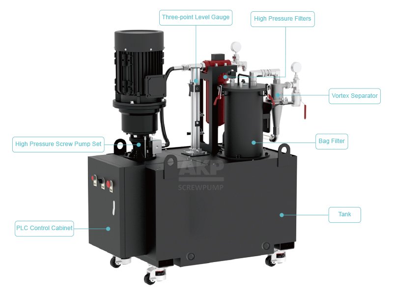 A3SS-XT3 PLC Control Cabinet High Pressure Coolant System.Equipped with the A3MT-E series triple-screw pump, the maximum pressure can reach 150 bar, and the flow rate ranges from 10 to 1000 L/min.
