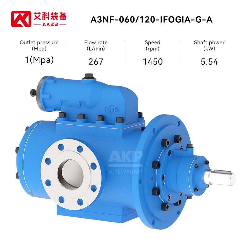 The A3NF-A series is a triple-screw pump with standard pressure, featuring a maximum pressure of up to 40 bar. It is commonly used in industries such as metallurgical plants, mines, cement plants, chemical plants, oil fields, oil tanks, power plants, ships, and rubber manufacturing. Its applications include serving as a lubricating oil pump, hydraulic oil pump, jacking oil pump, seal oil pump, control oil pump, gathering and transportation booster pump, oil supply pump, oil unloading pump, and aromatic oil pump, among others.